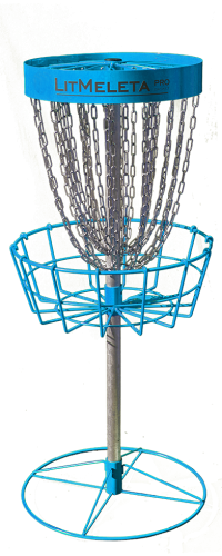 Mūsų gaminamas krepšys „LitMeleta PRO basket“ (sertifikato Nr. 21-144) yra priskirtas prie „Championship“ kategorijos. Tai reiškia, kad parkas, kuriame sumontuoti tokie krepšiai, gali organizuoti pačio aukščiausio lygio varžybas, turnyrus ar čempionatus, bei atitinka aukščiausius keliamus reikalavimus. Krepšys turi tris eiles grandinių, viso 30 vnt. Po daug eksperimentavimų ir ilgų krepšio bandymų, jų ilgis bei išdėstymas pasirinktas taip, kad krepšys užtikrintai „gaudytų“ į jį pataikančius diskus.